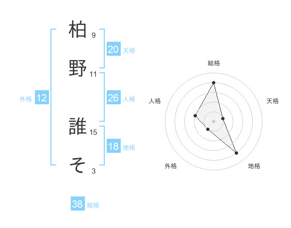 柏野 誰そさんの総格は38画の4点!