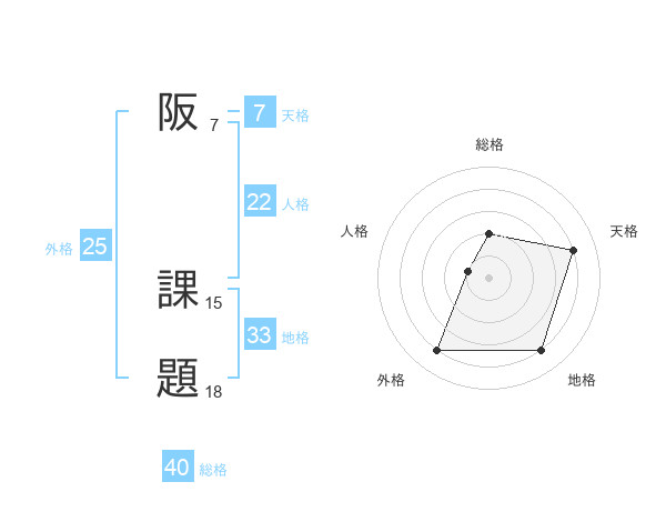 阪 課題さんの総格は40画の2点!