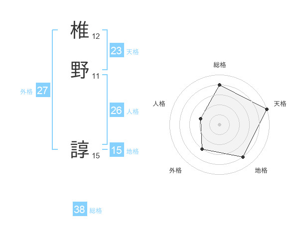 椎野 諄さんの天格は23画の5点!