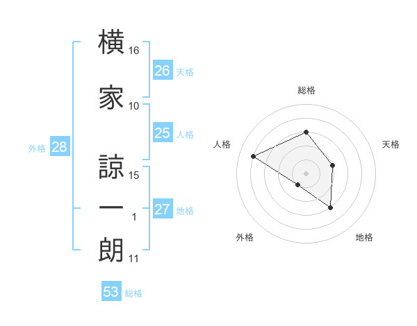 横家 諒一朗さんの総格は53画の3点!