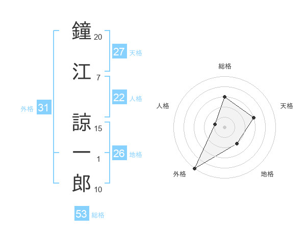 鐘江 諒一郎さんの総格は53画の3点!