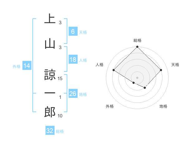 上山 諒一郎さんの総格は32画の5点!