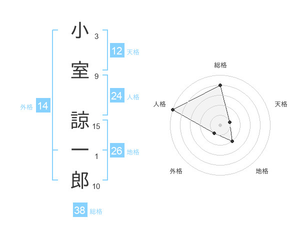 小室 諒一郎さんの総格は38画の4点!