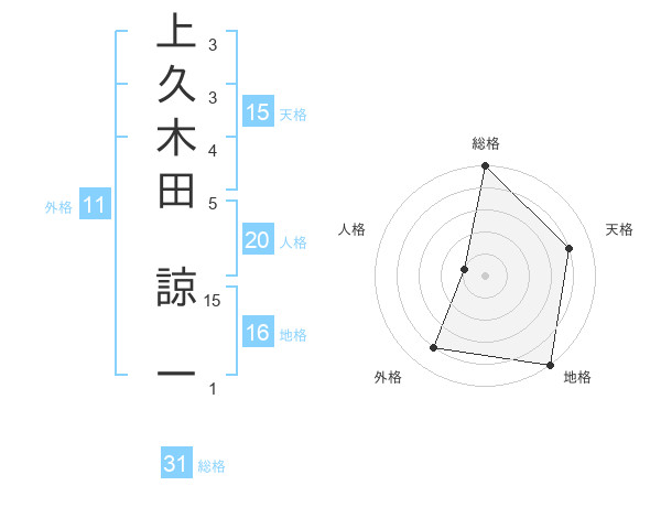 上久木田 諒一さんを姓名の画数から五運を鑑定