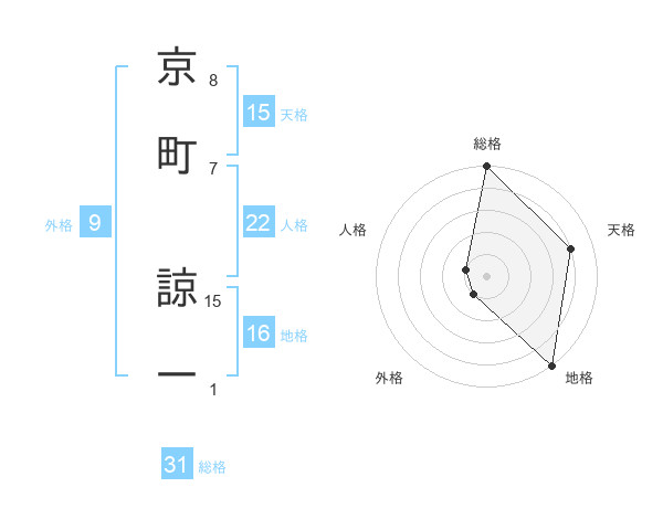 京町 諒一さんの総格は31画の5点!