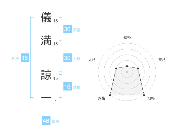 儀満 諒一さんを姓名の画数から五運を鑑定