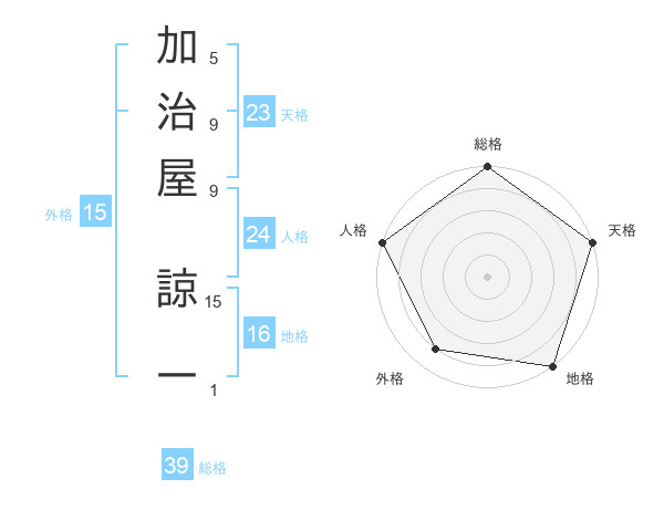 加治屋 諒一さんの天格は23画の5点!