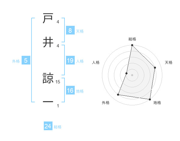 戸井 諒一さんを姓名の画数から五運を鑑定