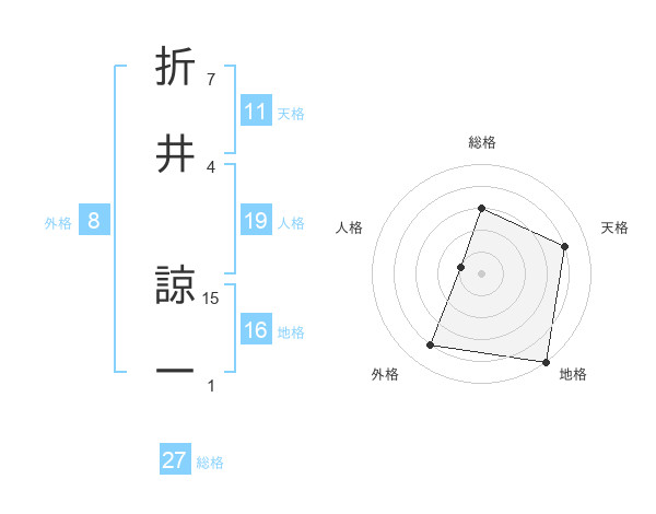 折井 諒一さんの総格は27画の3点!