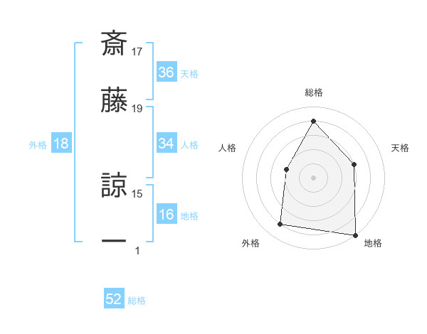 斎藤 諒一さんを姓名の画数から五運を鑑定
