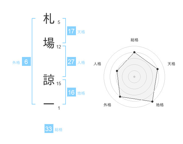 札場 諒一さんの天格は17画の4点!