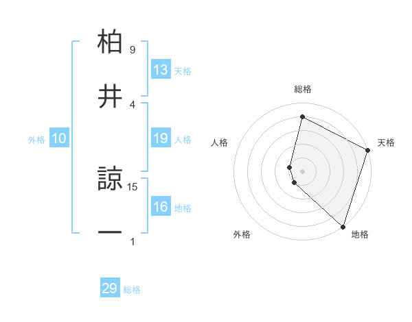 柏井 諒一さんの総格は29画の4点!