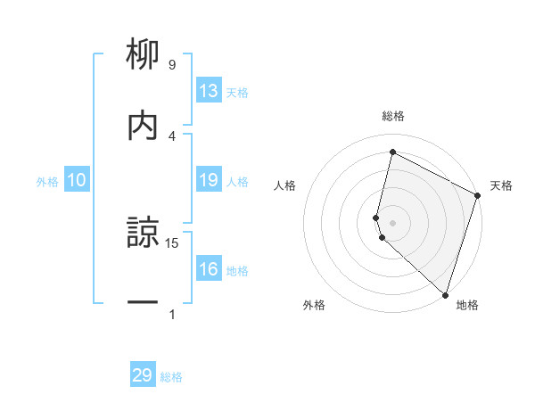 柳内 諒一さんの総格は29画の4点!