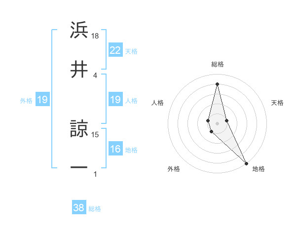 浜井 諒一さんの総格は38画の4点!
