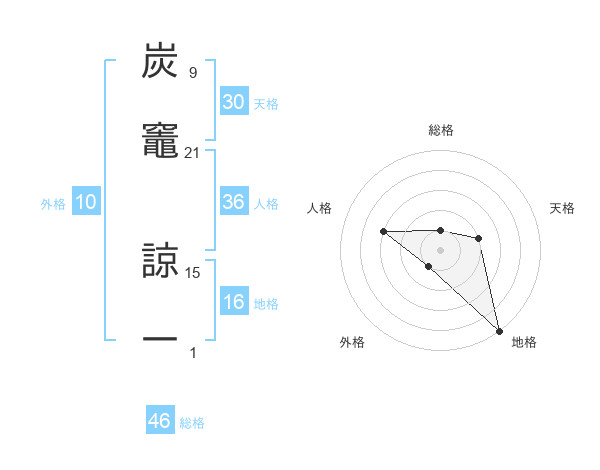 炭竈 諒一さんの総格は46画の1点!