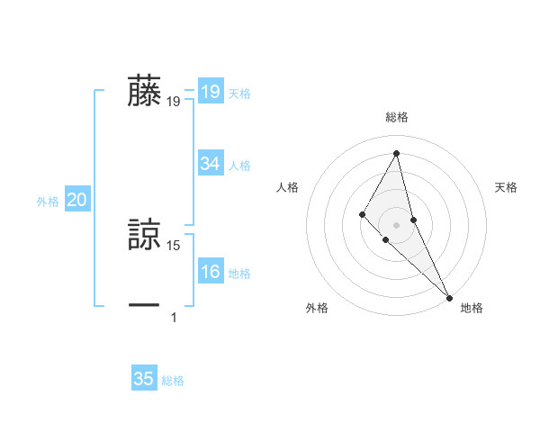 藤 諒一さんの総格は35画の4点!