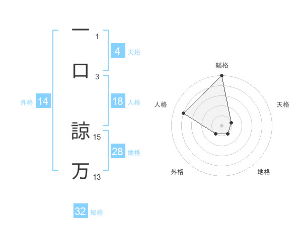 一口 諒万さんの総格は32画の5点!