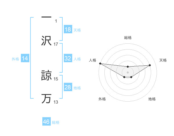 一沢 諒万さんの総格は46画の1点!