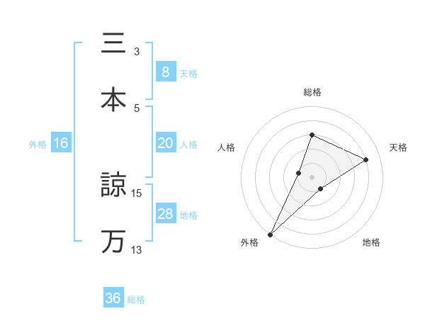 三本 諒万さんの天格は8画の4点!
