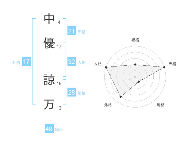中優 諒万さんの天格は21画の5点!