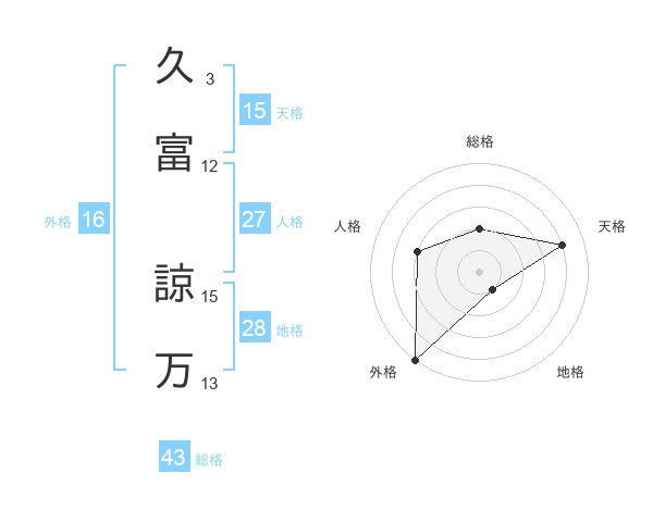 久富 諒万さんの天格は15画の4点!