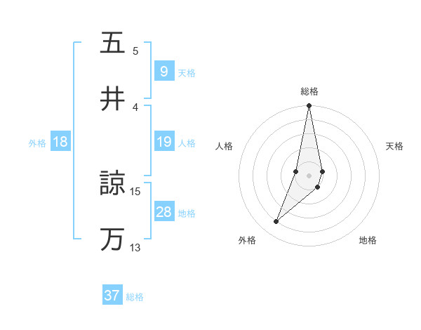 五井 諒万さんの総格は37画の5点!