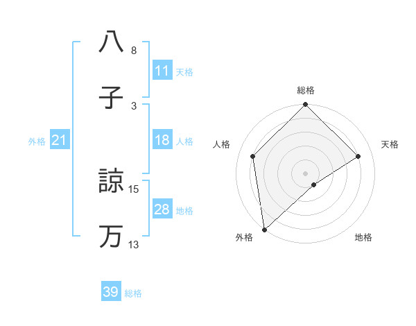 八子 諒万さんの総格は39画の5点!