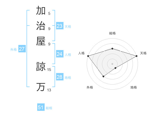 加治屋 諒万さんを姓名の画数から五運を鑑定