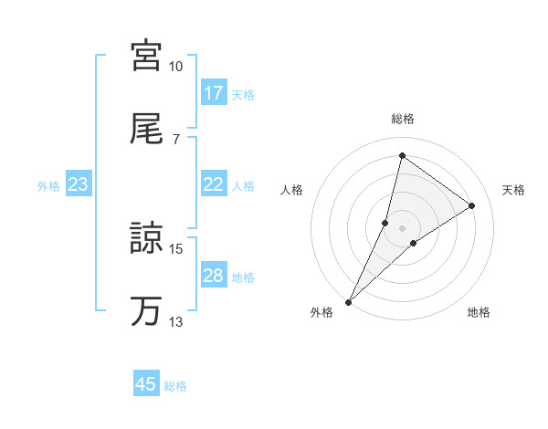 宮尾 諒万さんの総格は45画の4点!