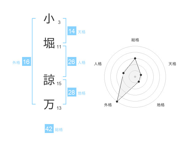 小堀 諒万さんを姓名の画数から五運を鑑定