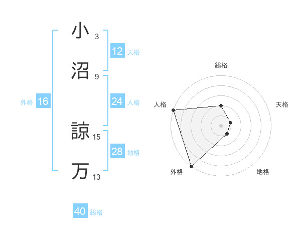 小沼 諒万さんの総格は40画の2点!