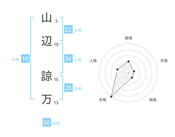 山辺 諒万さんの総格は50画の2点!
