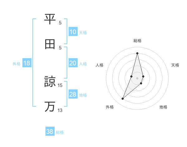 平田 諒万さんの総格は38画の4点!
