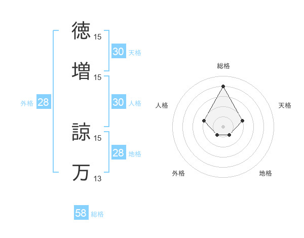 徳増 諒万さんの総格は58画の4点!