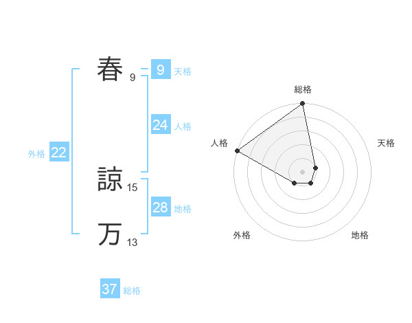 春 諒万さんの総格は37画の5点!
