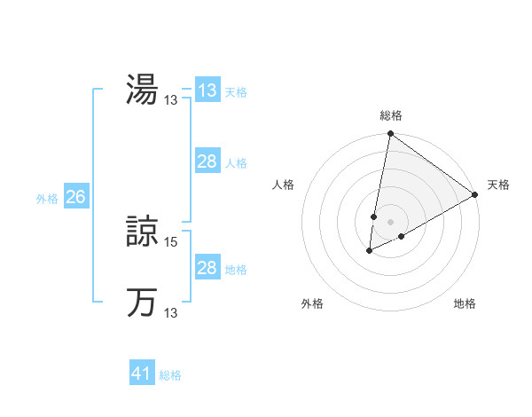湯 諒万さんの総格は41画の5点!