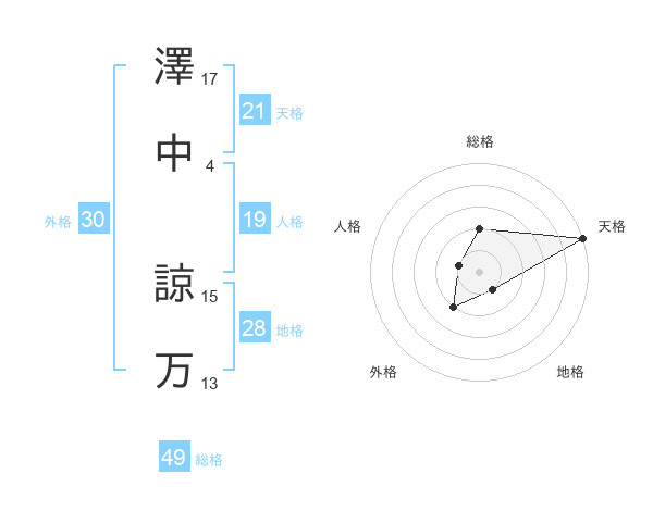 澤中 諒万さんの天格は21画の5点!