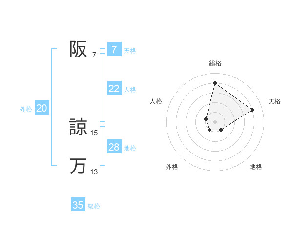 阪 諒万さんの総格は35画の4点!