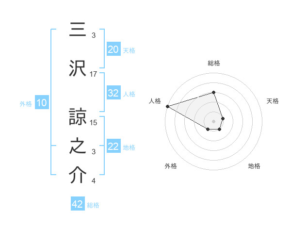三沢 諒之介さんを姓名の画数から五運を鑑定