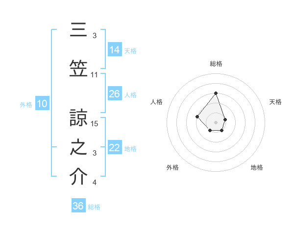 三笠 諒之介さんを姓名の画数から五運を鑑定