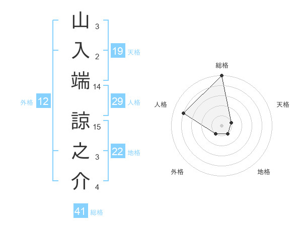山入端 諒之介さんの地格は22画の1点!