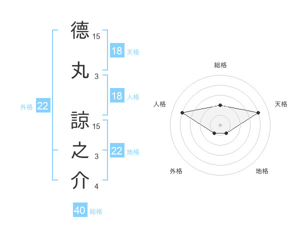 德丸 諒之介さんの天格は18画の4点!