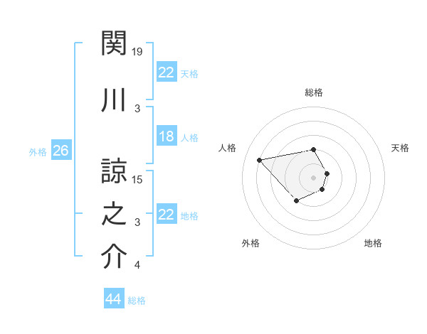 関川 諒之介さんの天格は22画の1点!