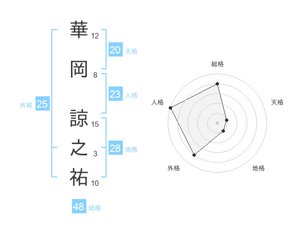 華岡 諒之祐さんの総格は48画の4点!
