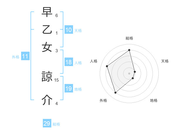 早乙女 諒介さんの総格は29画の4点!
