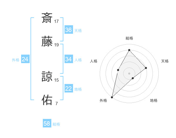 斎藤 諒佑さんを姓名の画数から五運を鑑定