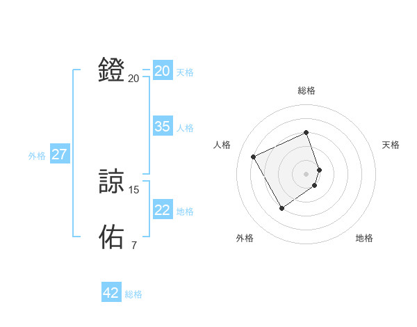 鐙 諒佑さんの総格は42画の3点!