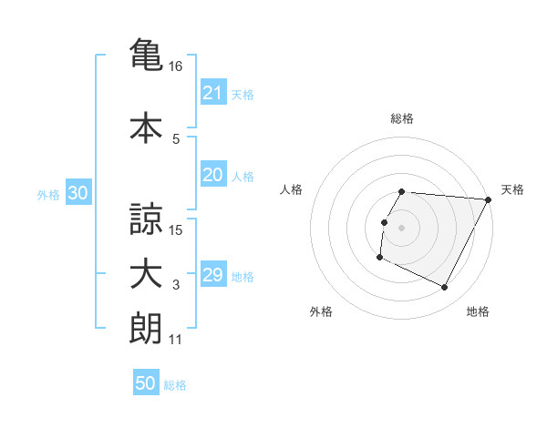 亀本 諒大朗さんを姓名の画数から五運を鑑定