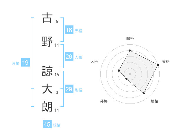 古野 諒大朗さんを姓名の画数から五運を鑑定