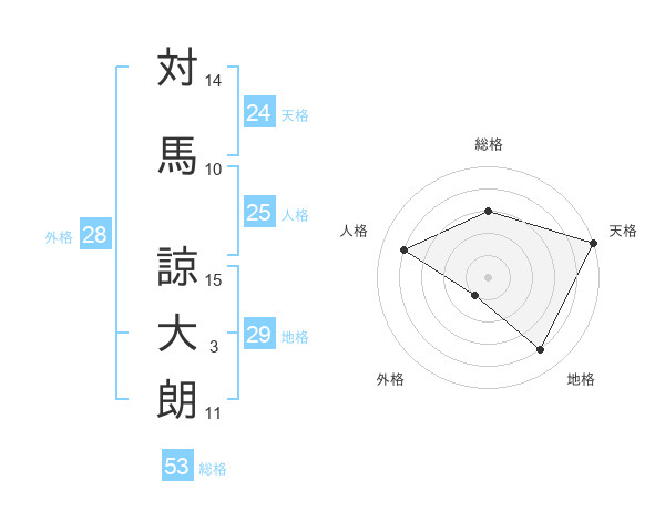 対馬 諒大朗さんを姓名の画数から五運を鑑定